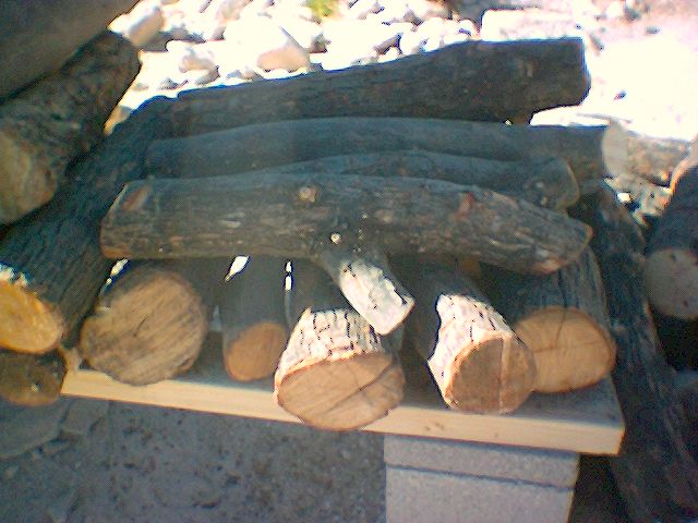 When done, you will have a pile elevated above the ground, blocks that are covered on both sides, and wood that will not fall off the pile. In short, a packrat-proof firewood stack :)