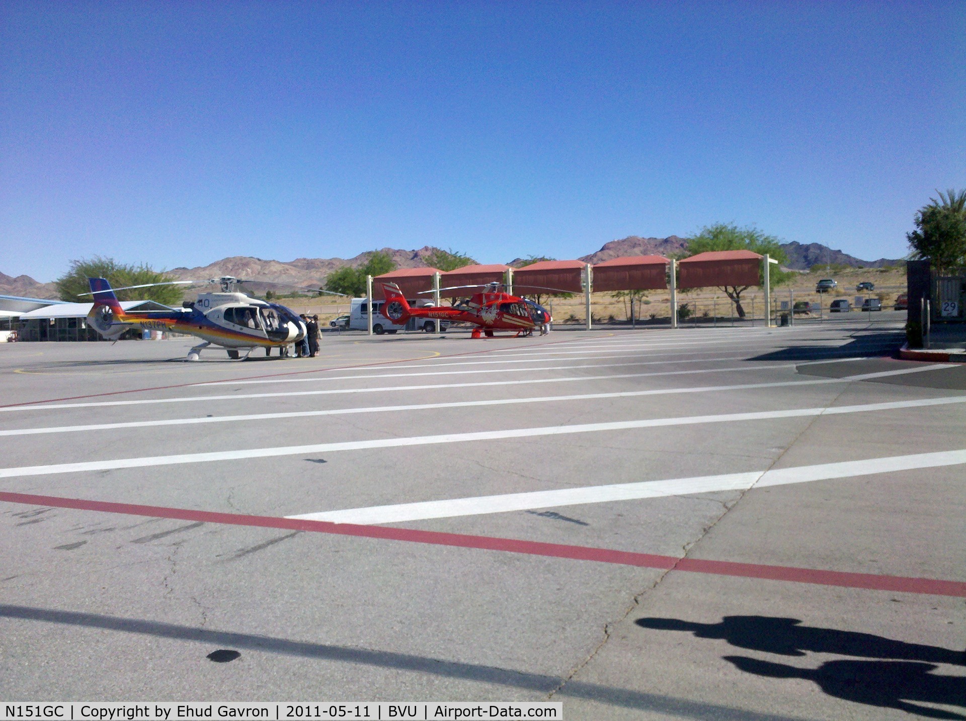 "Papillon Helicopter parked awaiting tourists going to view the Grand Canyon area." "2011-05-11"