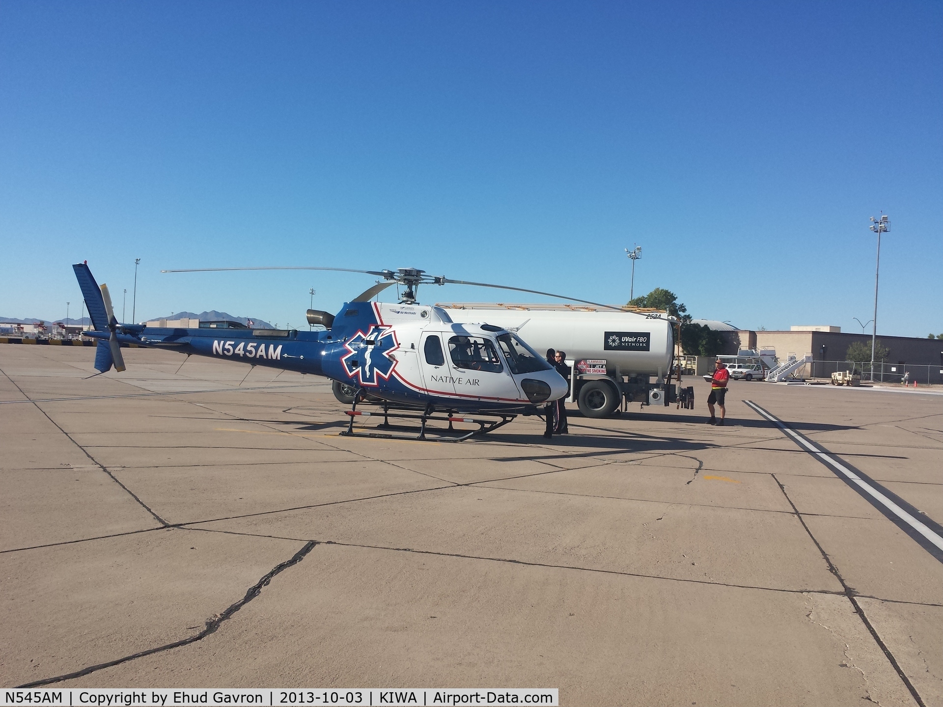 "Air Methods helicopters stopping for crew breakfast and some JetA at KIWA." "2013-10-03"